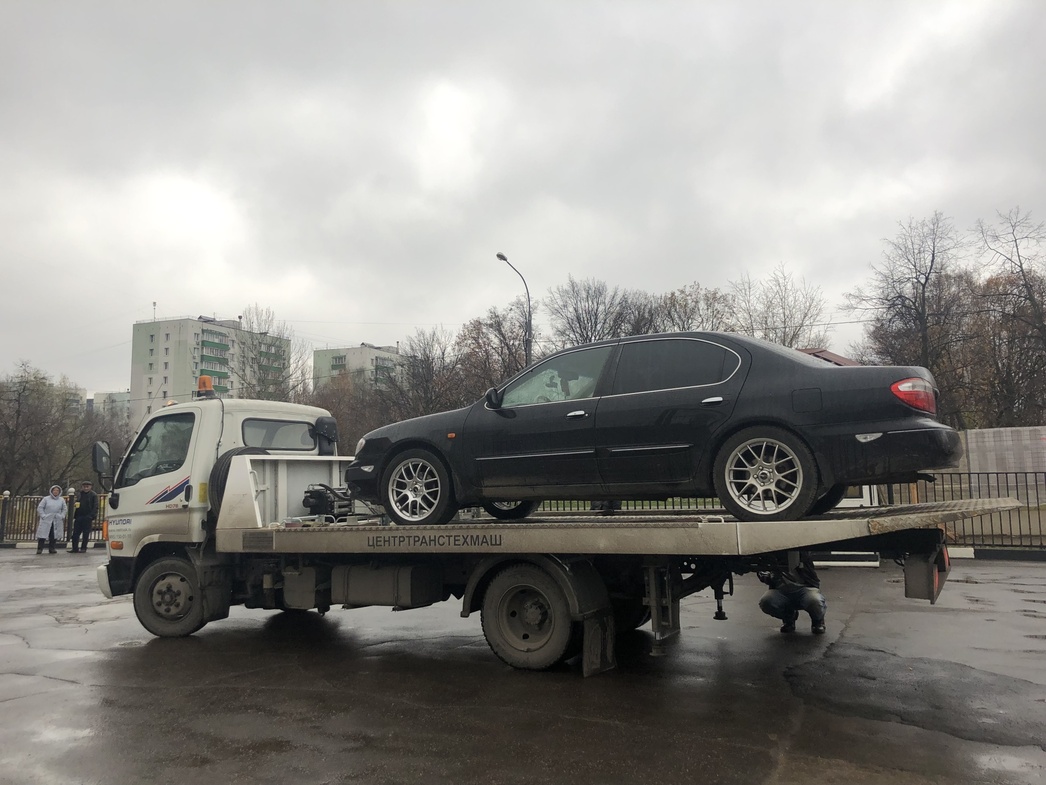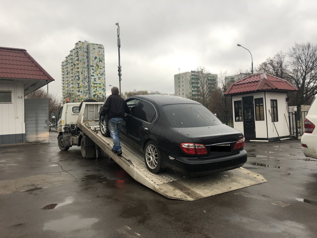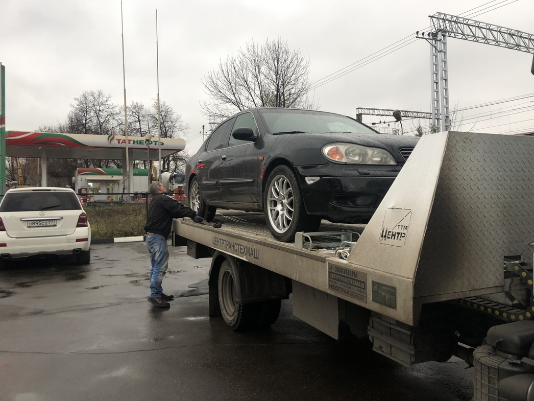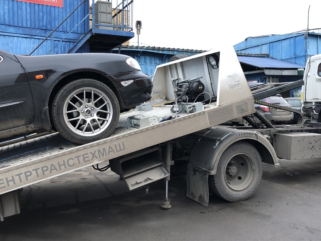 Свое обещание он сдержал — машина показалась на горизонте ровно в 14:00. Погрузка заняла минут десять: водитель эвакуатора припарковался, опустил платформу, помог на нее заехать, подкручивая руль, и закрепил колеса специальными ремнями. Как только мы выехали в сторону автосервиса, со мной вновь связались специалисты РАМК — уточнили, прибыла ли к нам помощь. Заботятся о клиентах, приятно.
