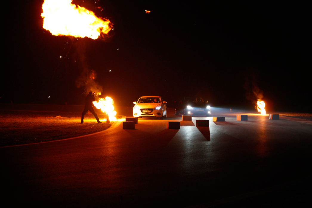 Полицейский разворот, разворот и парковка на ручнике, дрифт и другие упражнения выполнялись на самых обычных, неподготовленных Mazda3 с 1,5-литровым двигателем и на «механике», и на «автомате».