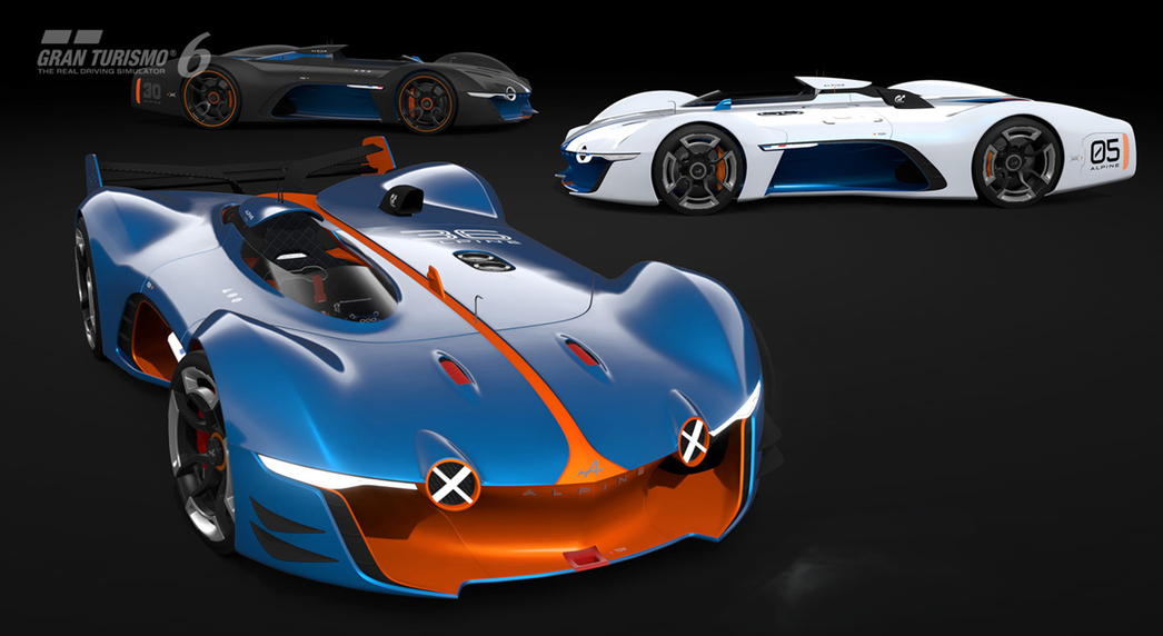 Renault намерена возродить легендарную марку Alpine – и новая история начинается с суперкара Vision для GT6, который станет основой для серийного автомобиля 2016 года. Автомобиль был разработан на основе прототипа для «Ле-Мана» Alpine A450, а в дизайне используются элементы от классических моделей Alpine 1960-х годов. Французы построили физический автомобиль, который будут демонстрировать публике в течение 2015 года. Заднеприводный суперкар оснащается 4,5-литровым мотором V8 (450 л.с.) в паре с секвентальной семиступенчатой коробкой передач.