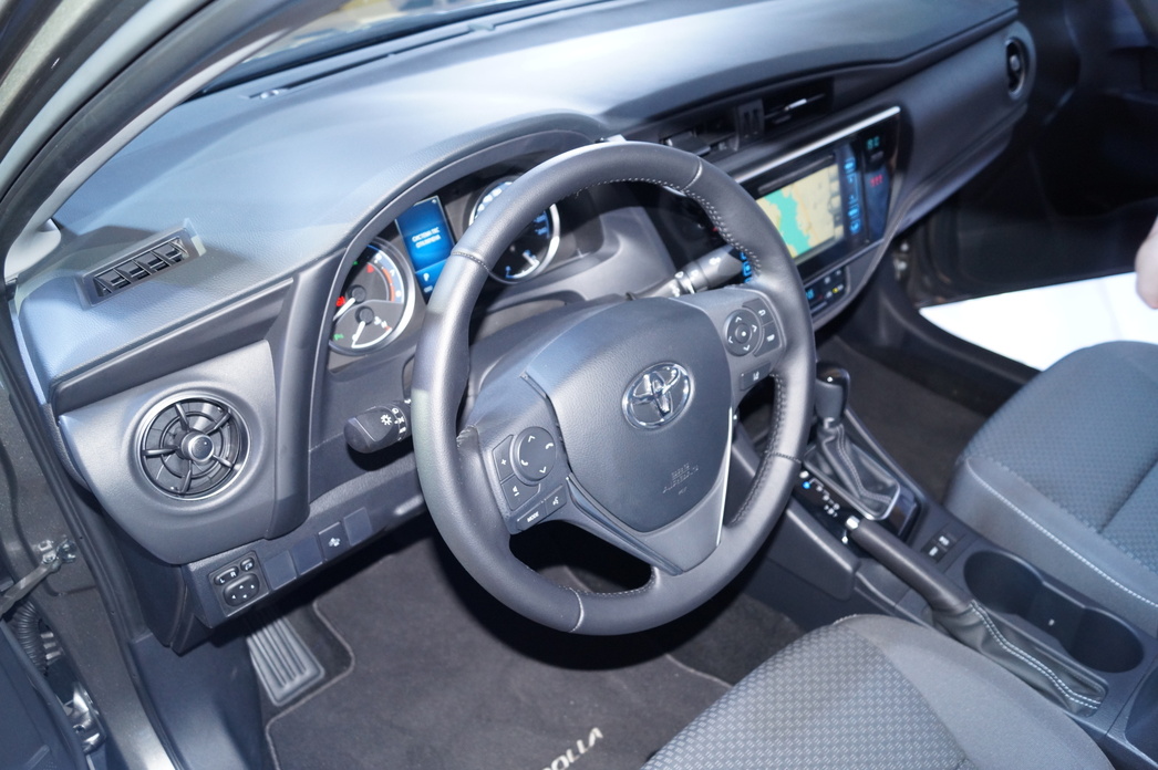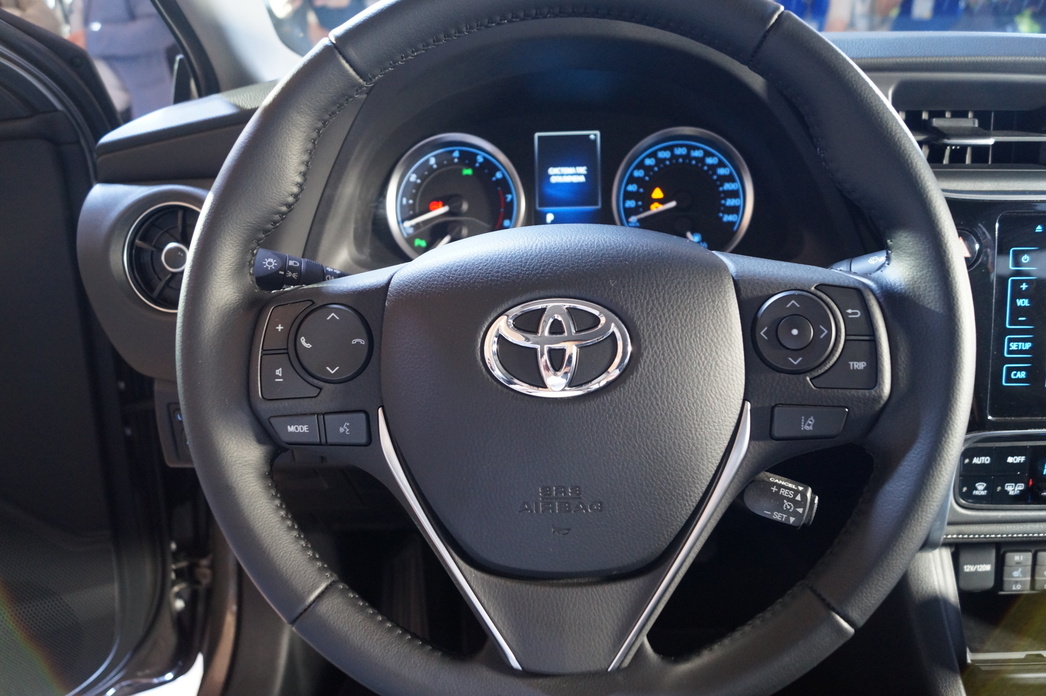 Итак, какие же премиум-обновления претерпела Corolla? Во-первых, она получила новые бамперы и стреловидную оптику, которая к тому же стала полностью светодиодной. Во-вторых – высокую подоконную линию, придающую машине более строгий вид. Апогеем внешних изменений стали молдинг на крышке багажника, антенна-плавник и изящные литые диски свежего дизайна.