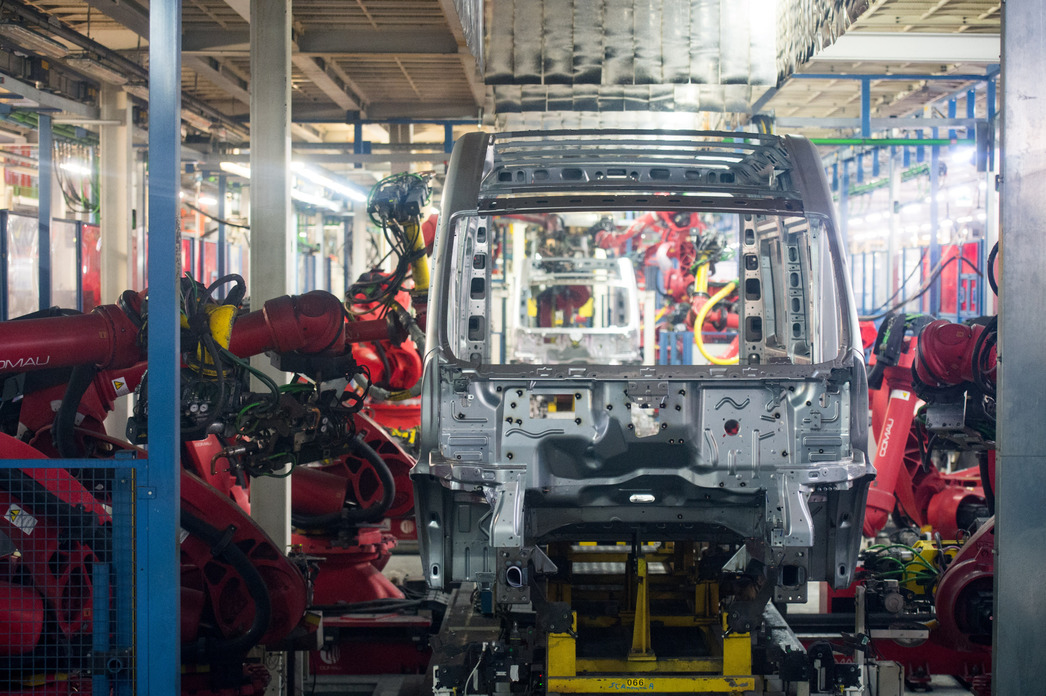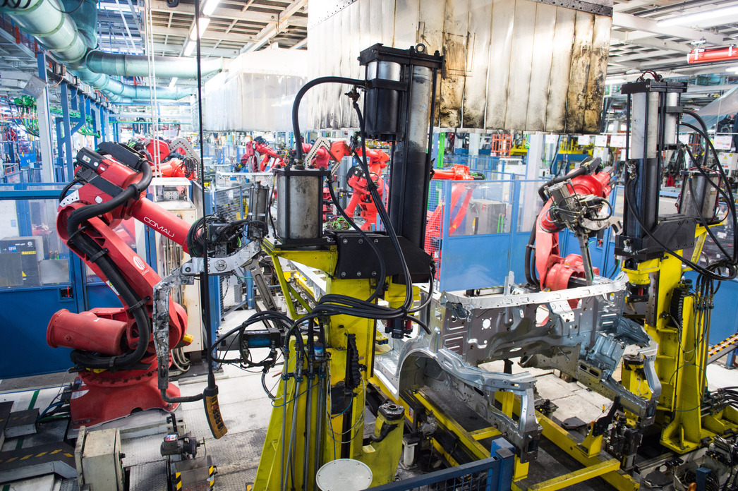 И тут вообще надо сказать, что доля ручного труда на этом заводе уверенно стремится к нулю. В цехах кузовной сборки, например, он не превышает и десяти процентов — автомобили варят роботы. Между прочим — самодиагностируемые. Машины научены оценивать свое состояние и в случае какого-нибудь «недомогания» вызывают ремонтную бригаду. И это, не считая плановых регламентных работ по замене масла или ТО их моторов. И эффект от использования робототехники впечатляющий — последние 13 лет конвейер тут функционирует как точнейшие швейцарские часы — не убегая вперед и не опаздывая ни на секунду.
