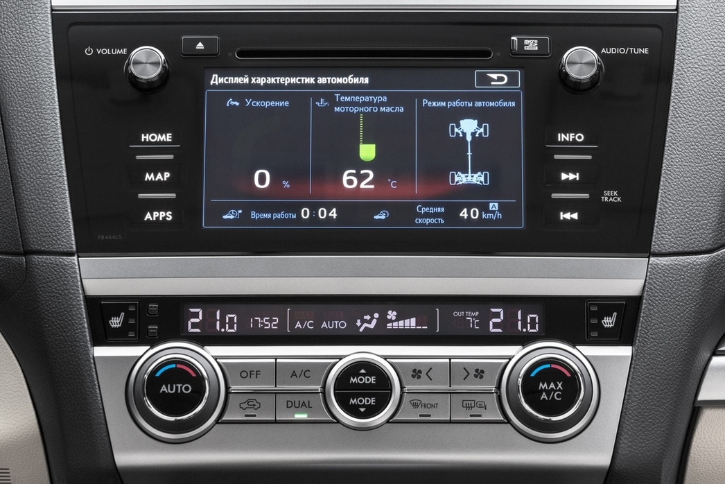 Материалы отделки салона, вплоть до последних поколений авто, никогда не были конкурентным преимуществом Subaru. Сегодня там, в пассажирском отсеке, сущий пир: большущий экран, разномастная кожа и сенсорные клавиши. Осталось только навести во всем этом благолепии порядок, привести к «общему знаменателю» центральную и приборную консоль. Одним словом, нанять-таки дизайнера. Инженеры для такой работы вряд ли подойдут.