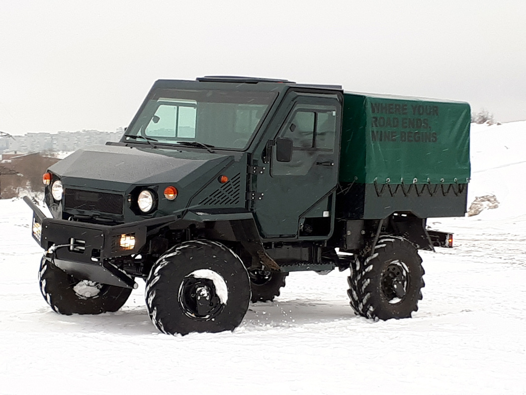 …Вездеход пригодится охотохозяйствам, рыболовам. Найдет применение и у коммунальных служб. Его гидравлическая система с электроуправлением позволяет устанавливать разное навесное и прицепное оборудование. А в кузов можно поставить, скажем, пескоразбрасыватель или сельскохозяйственный опрыскиватель.
