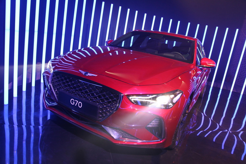 Короткий передний свес, длинный капот, высокий багажник, «жабры» на передних крыльях, полностью светодиодные фары — своим видом G70 ставит на место Mercedes-Benz C-класса, Infiniti Q50 и «трёшку» BMW, которую, кстати сказать, корейцы назначили главным конкурентом.