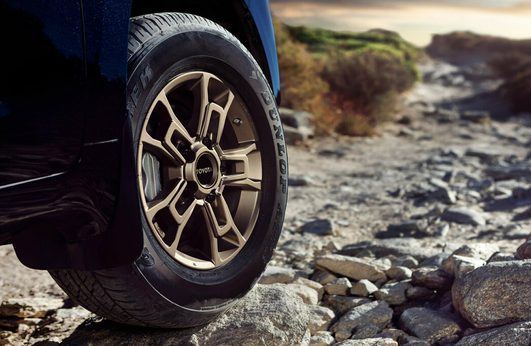 «Праздничный» Toyota Land Cruiser Heritage Edition будет представлен в двух цветах кузова — на выбор взыскательного покупателя: черный Midnight Black Metallic или белый Blizzard Pearl. Оба оттенка эффектно дополняет бронзовый цвет 18-дюймовых кованых алюминиевых колесных дисков.