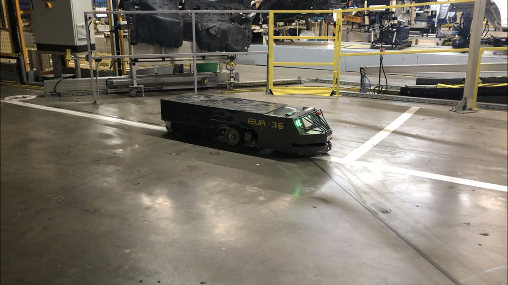 В необъятных помещениях детали туда-сюда возят отнюдь не сотрудники, а небольшие грузовые платформы, которые двигаются по заданной траектории — по магнитной разметке на полу — в автономном режиме. Операторам остается лишь складывать в тележки запчасти и вводить конечные «адреса». Кстати сказать, эти помощники-грузовички на гелевых аккумуляторах — авторская разработка российского предприятия «Ниссан».