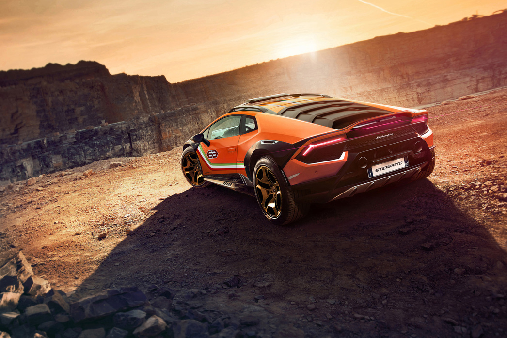 Но все это концепткар унаследовал от рестайлингового Evo. Чем же может похвастать именно Lamborghini Huracan Sterrato? Разработчики приподняли авто, нарастив клиренс на 47 мм, а также увеличили углы въезда и съезда на 1% и 6,5% соответственно.