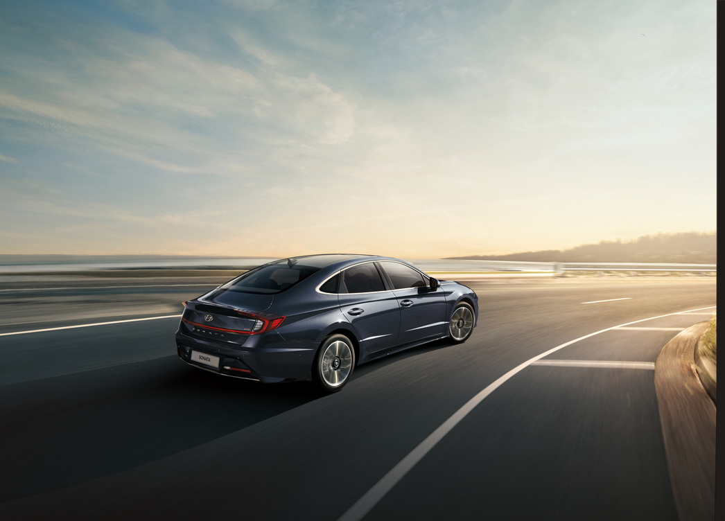 Снаружи новая «Соната» привлекает внимание необычными светодиодными V-образными дневными ходовыми огнями спереди и футуристичными фонарями, которые объединяет тонкая светодиодная полоска, сзади. Фары — полностью светодиодные, но с оговоркой — в топовых комплектациях доступны более дорогие LED-фары прожекторного типа, в начальных — светодиодные с отражателем.