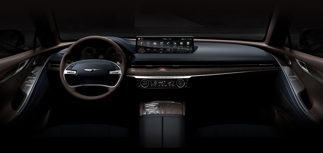 Интерьер, где главную роль играет 14,5-дюймовый экран мультимедийного комплекса, новый седан тоже перенял от SUV. Рычаг переключения передач также сменился на шайбу. А вот рулевое колесо у G80 другое.