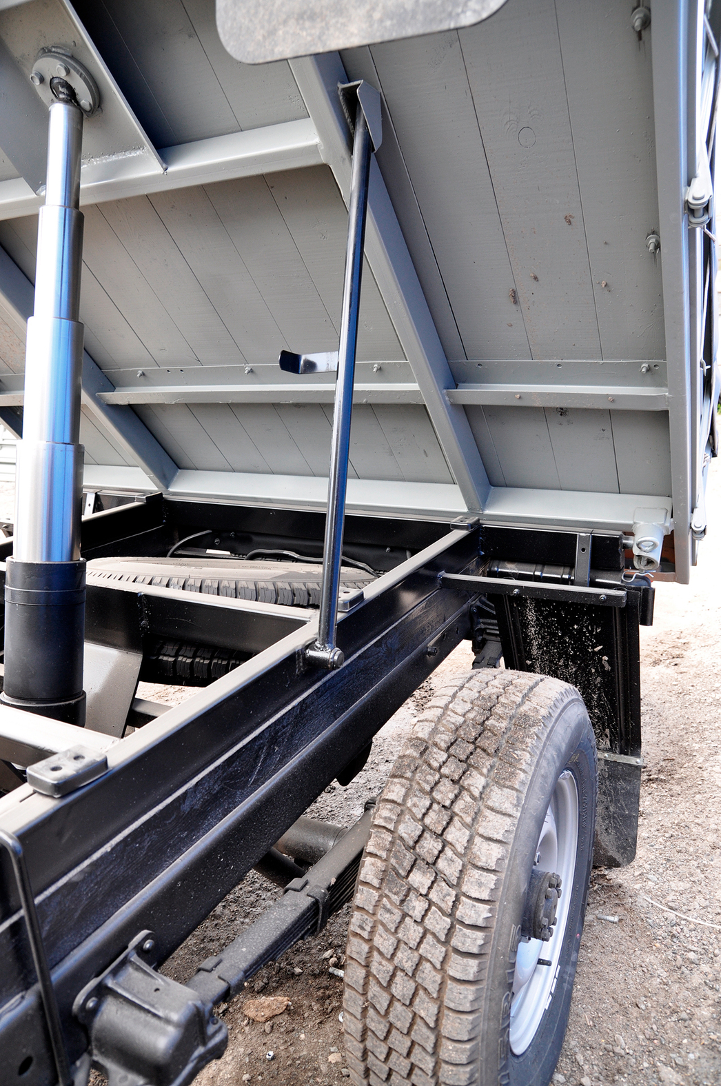 Стандартная платформа с габаритами 2680 мм х 1870 мм х 400 мм опрокидывается 12-вольтовой гидравлической станцией с выносным пультом и четырехсекционным гидроцилиндром.