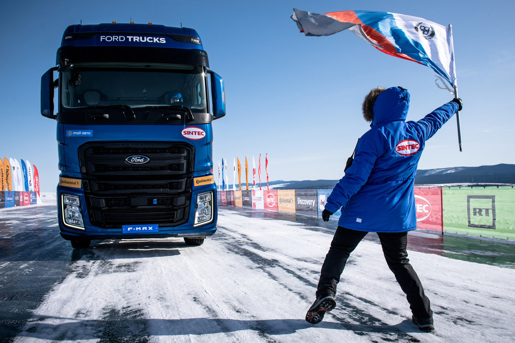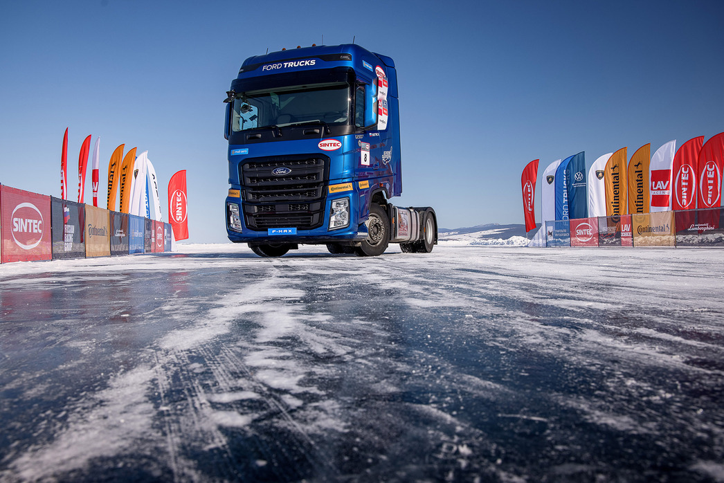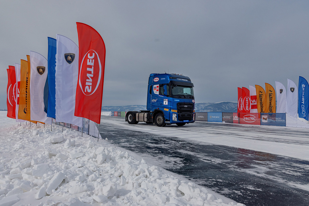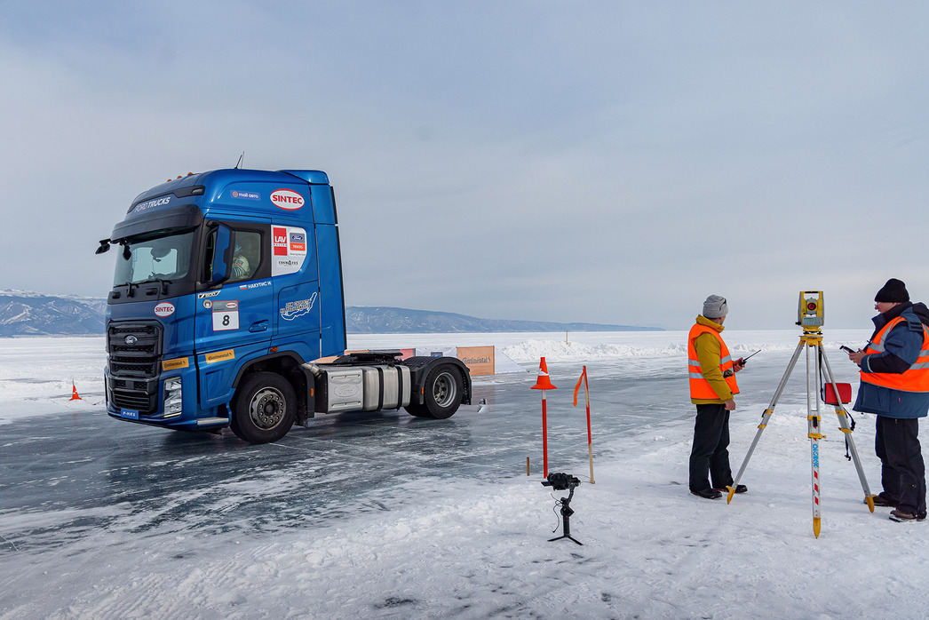 Соревновался тягач в двух дисциплинах: в попытке достичь максимальную скорость на льду и в достижении минимального тормозного пути со скорости 80 км/ч.