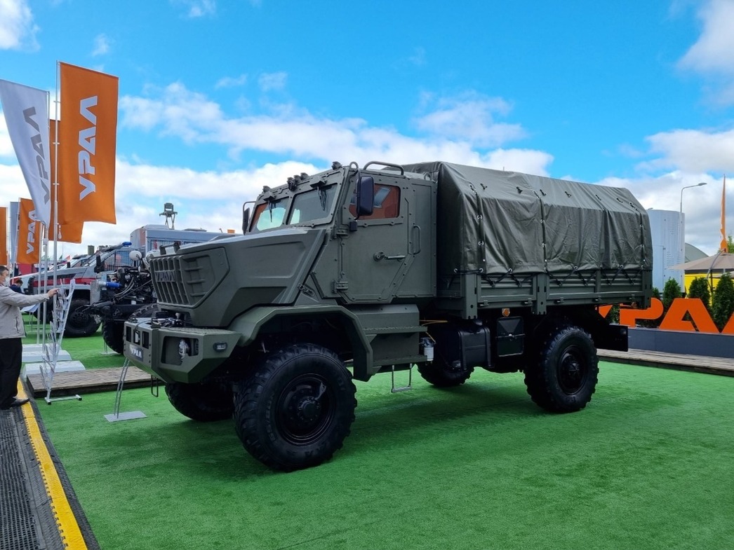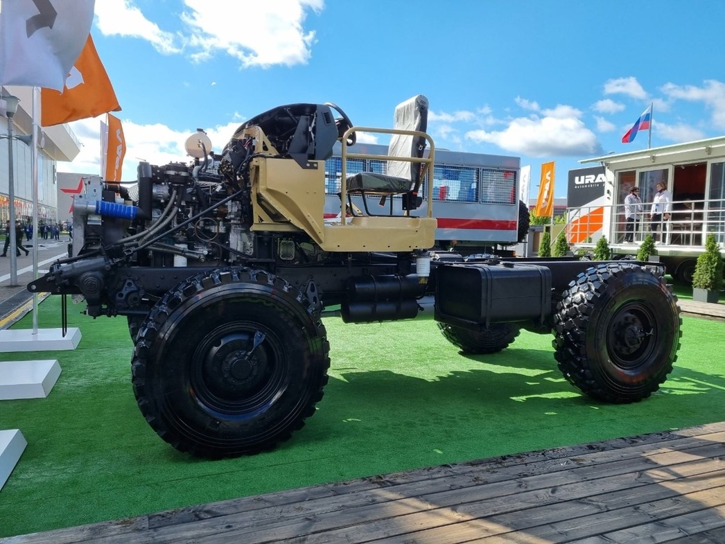 «Урал» представляет модель, которая идет на смену легендарной «Шишиге». Это капотный Урал-4966, спроектированный на базе «гражданской» модели 43206. У новинки бронированная кабина, наддувный «дизель» ЯМЗ и, конечно же, полный привод. Грузоподъемность — около четырех тонн. На форуме показана модель с новым дизайном армейских Уралов — с интегральным капотом, отрицательным наклоном решетки радиатора и светодиодной оптикой.