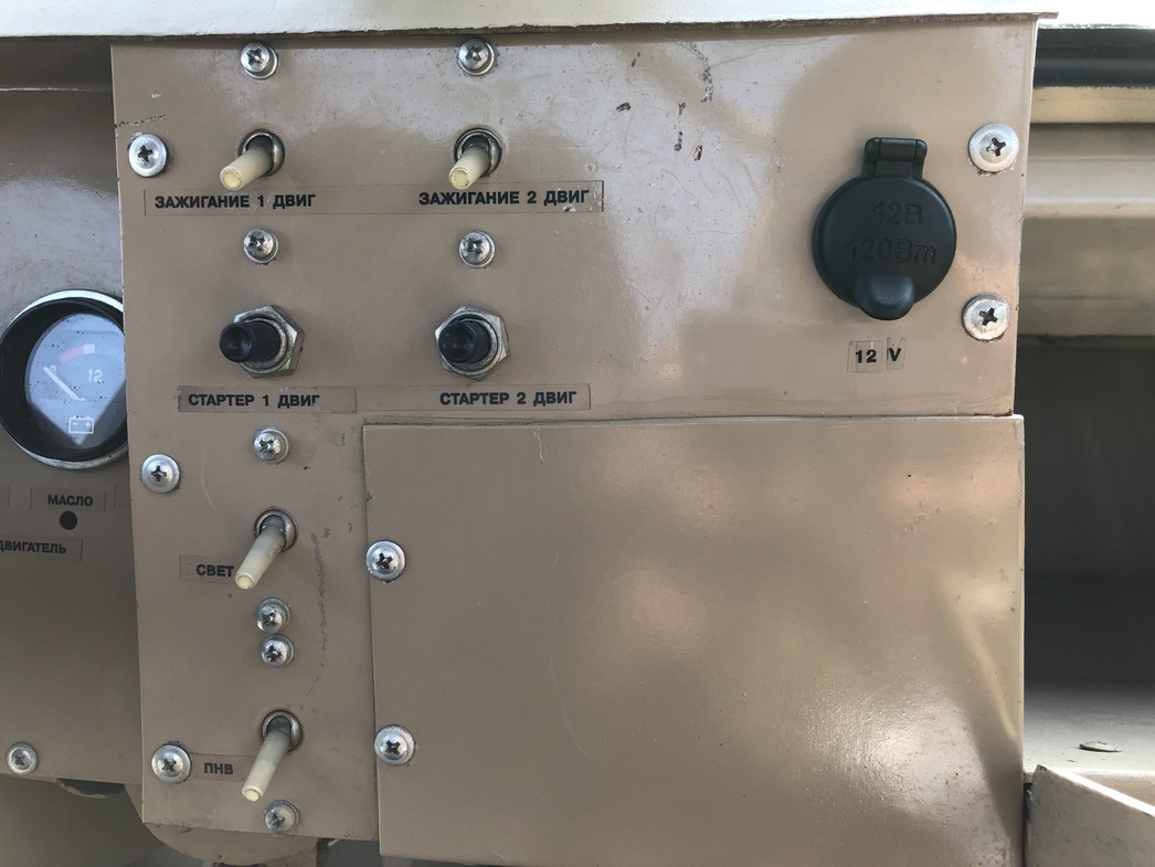 Машина изначально задумывалась с низкотемпературной гибридной установкой, позволяющей подкрасться к врагу скрытно и бесшумно. Но гибридов в стране не нашлось. Поэтому в тачанку поставили два мотора от LADA Vesta объемом 1,8 л. И две коробки передач с общим рычагом переключения. И все это не особо синхронизировали, сделав два простых замка шпингалетного вида, включающих в работу то оба мотора с коробкой, то один из них.