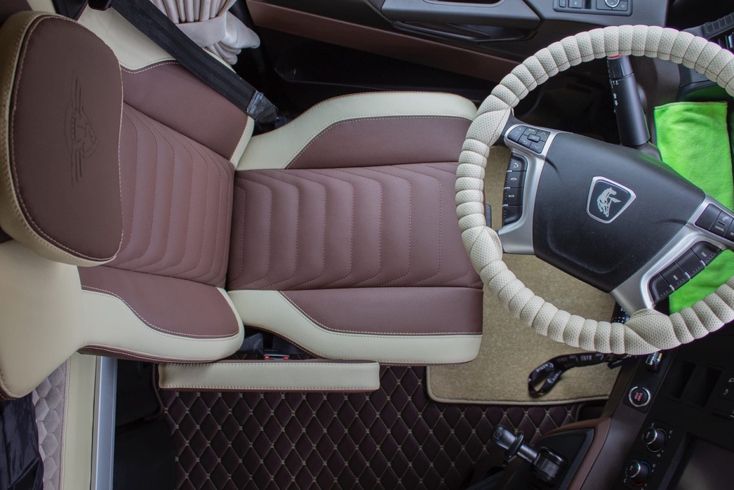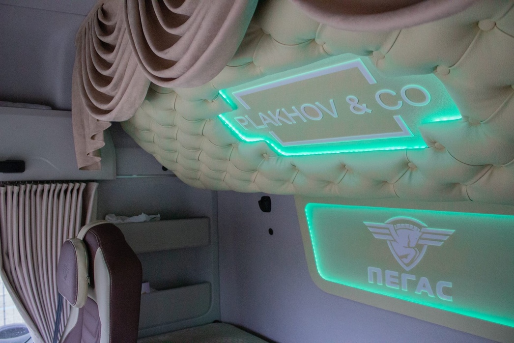 Вдобавок «Халку» достались колесные диски зеленого цвета и радикально переработанный салон: в кабине кожей обшиты сиденья, руль и многое другое. Кроме того, внутреннее убранство украшено контурной подсветкой… Притом, как отмечает интернет-пользователи, это отнюдь не выставочный экспонат, а обычный работяга — его довольно часто встречают на дорогах России.