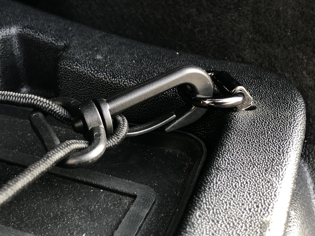 Другой аксессуар, связанным с грузоперевозками, это органайзер в багажнике — суть пластиковый поддон, дополненный разделителем, который можно переставлять в пазах и тем самым ограничивать перемещение поклажи. А для более надежной фиксации груза предусмотрена эластичная сетка, которая крепится к петлям по углам поддона. Полезный объем багажника при этом становится чуть меньше, зато удобство пользования существенно повышается. Толковая вещь!