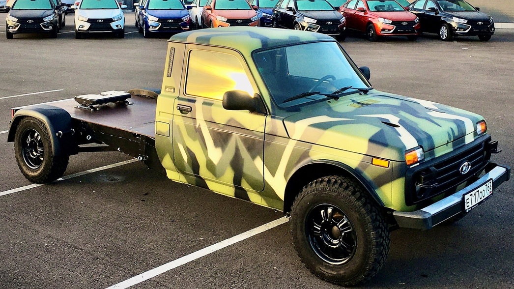 Также новинке досталась рычажная задняя подвеска на пневматических подушках, что позволяет машине «приподниматься» или «приседать». Правда, авторам столь необычной концепции еще только предстоит узаконить весь объем переделок. Но как только это будет сделано, в мелкую серию пойдут около 30 версий необычной «Нивы».