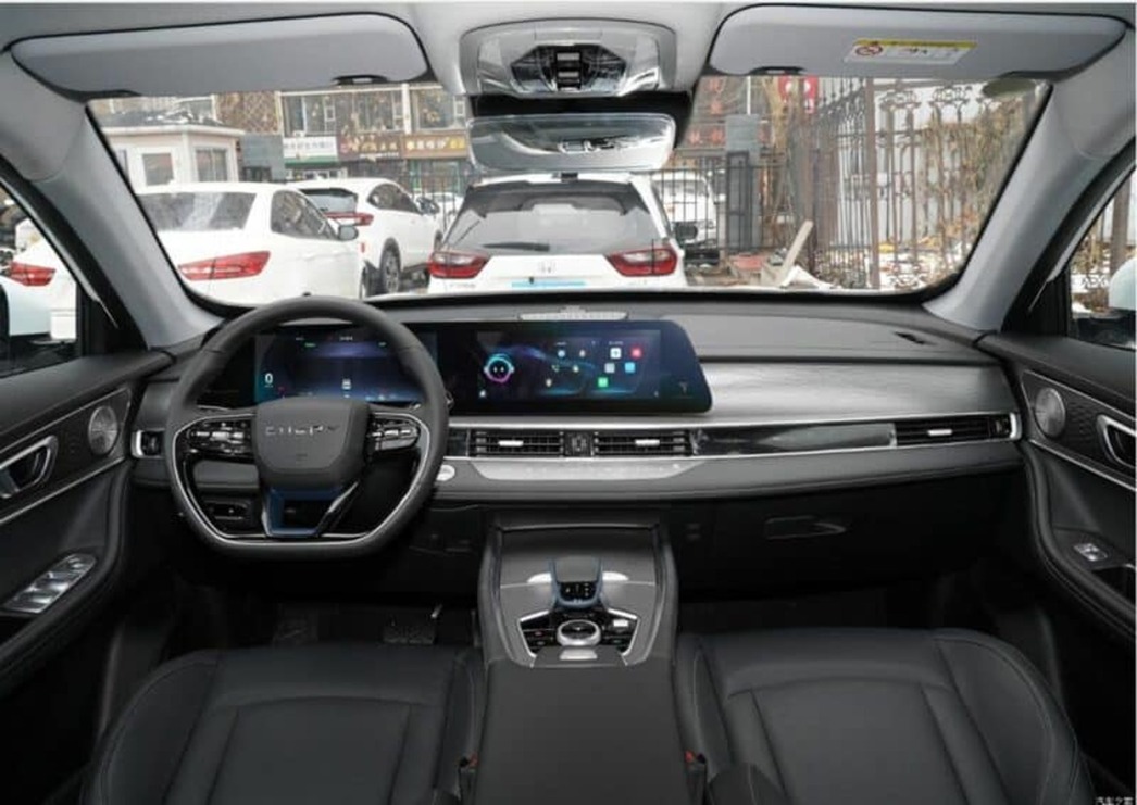 Центральное место в интерьере автомобиля занимает 24,6-дюймовая «плита», состоящая из двух цветных мониторов — приборной доски и мультимедийной системы. В оснащении модели присутствует целый набор электронных ассистентов помощи водителю.