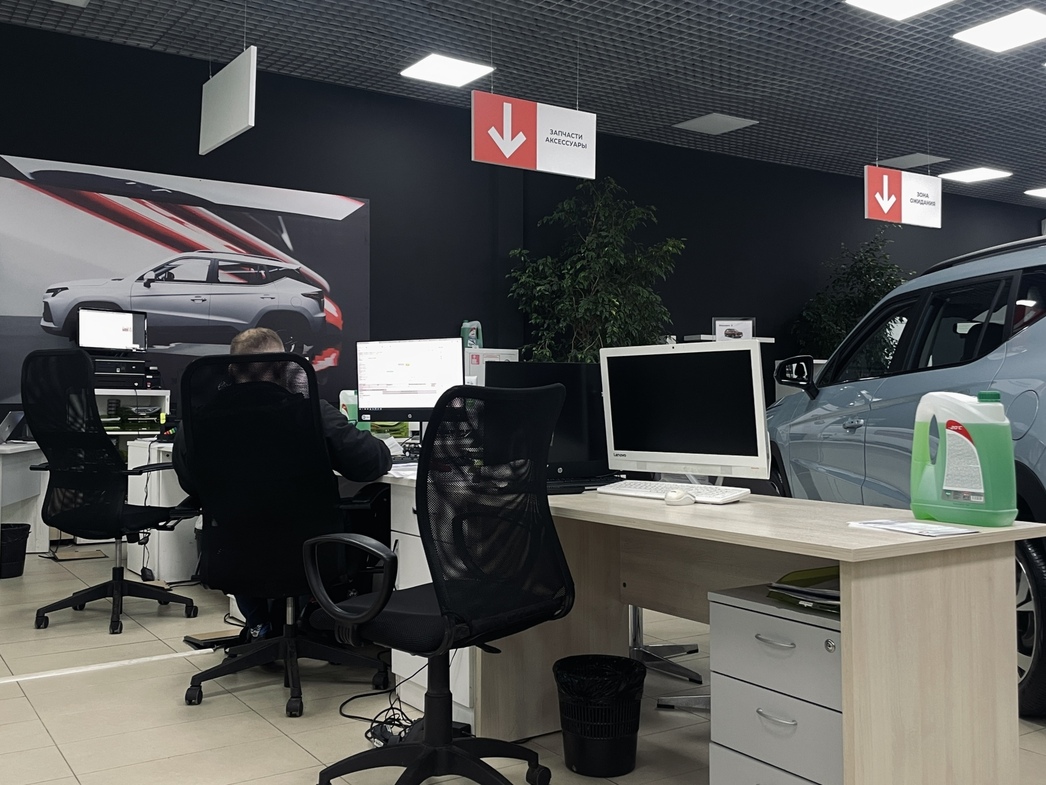 Несмотря на то что «приемщику» явно не хотелось отрываться от своих заказ-нарядов, он таки не отмахнулся от «залетчиков» из отдела продаж. А пришли мы с очень важным для любого практичного покупателя машины вопросом — чего ждать от обслуживания Москвича. По стоимости первых ТО проконсультировал, хотя эта информация есть на официальном сайте бренда, о ситуации с запчастями рассказал. По его словам, все расходники и ходовые детали всегда в наличии есть — подождать, возможно, придется только какую-то «кузовщину». Но 2-3 недели — это по нынешним временам не проблема. У иных европейских марок срок поставок запчастей доходит до полугода.
