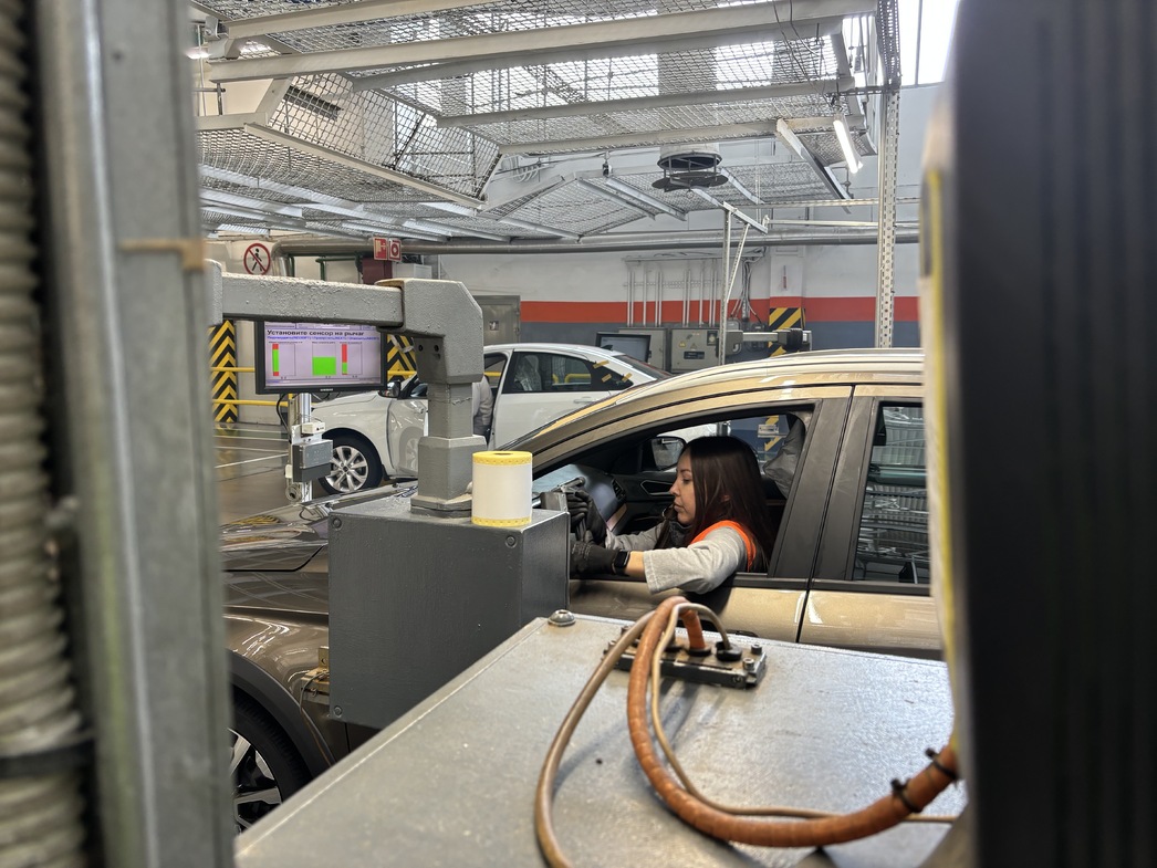 После всех этапов машину ждет еще одно испытание — живым человеком. В специальном световом коридоре проверяются наличие повреждений и работоспособность всех механизмов. Дождевая камера выливает на машину 350 литров воды, после чего контролер ищет малейшие следы негерметичности. Затем автомобиль уходит на трек, где его слушают на гравии, «змейке», «рыбьей кости», бордюре и эстакаде, тестируют работу системы рулевого управления, светотехники и приборов.
