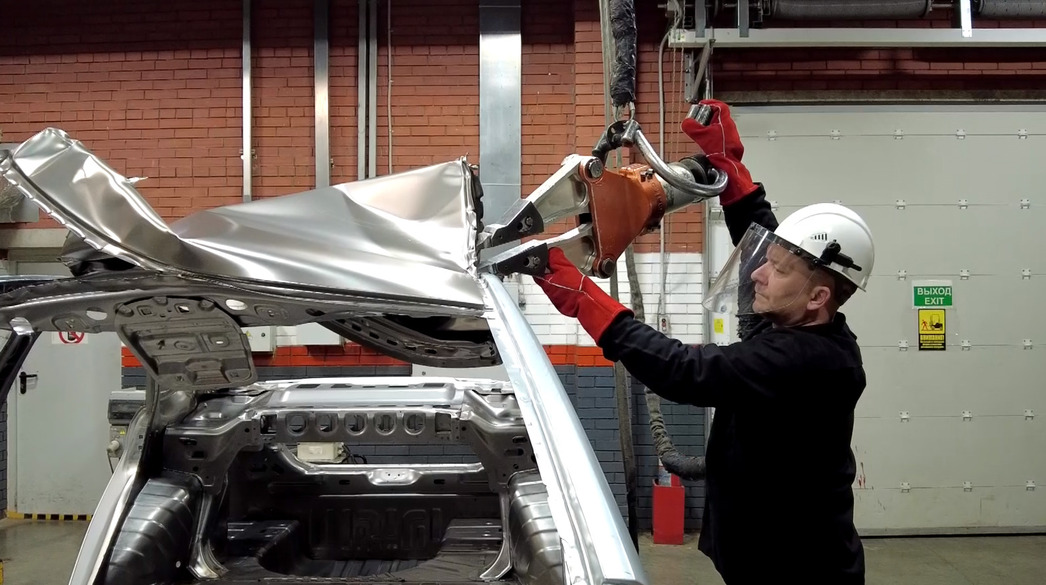 Самая «интимная» часть проверки собственной работы идет в лаборатории, куда обычно не пускают посторонних. Тут сваренный кузов проверяют глазами и ультразвуком, а это более 4,5 тысячи сварочных точек. Три кузова в неделю проходят разрушающий контроль, где разрывают сварные швы.