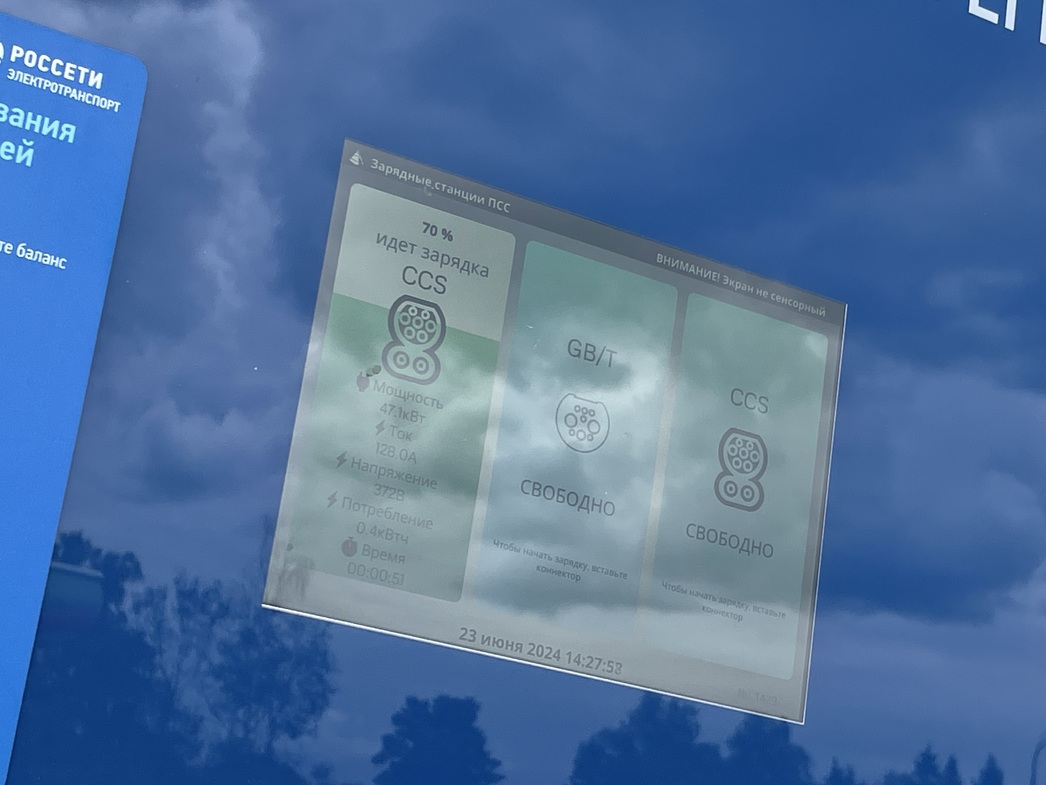 Времени было в обрез, так что перезванивать не стала — уехала ни с чем, благо заряд батареи позволял. Но через пару дней вернулась, решив во что бы то ни стало победить. Как итог: 25 минут на телефоне (спасибо, что в этот раз не бросили), дистанционное подключение инженеров, десятки попыток вытащить-вставить и... снова ничего. А пока мы сражались с капризным терминалом, на «обед» подъехала другая машина — с тем же европейским разъемом CCS Combo 2. И у нее сессия почему-то началась без каких-либо проблем.