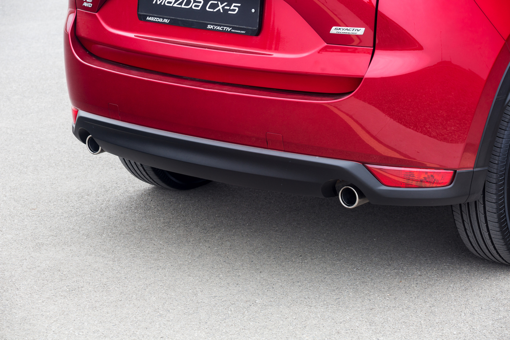 Раз уж начал я с внешних особенностей, то обсудим облик нового СХ-5. «Японец» возмужал, стал агрессивнее и визуально дороже. Хищный клюв капота нависает над ячеистым щитом радиатора, из которого выступает эмблема Mazda; изящный переход между светодиодными фарами и решеткой; объемные хромированные элементы — рассматривать детали интересно и приятно. Передние стойки перенесли на 35 мм назад, что прибавило профилю кроссовера динамичности. Корма претерпела минимум изменений, разве что на задних фонарях появились небольшие направляющие, регулирующие поток воздуха.