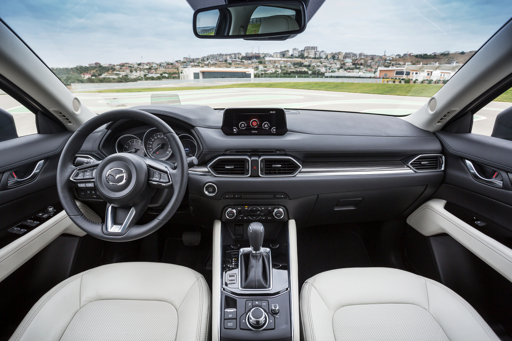 Коэффициент лобового сопротивления CX-5 снижен на 6%, что положительно сказывается на экономии топлива и снижении уровня шума. Шум — это вообще было одним из главных нареканий владельцев не только «маздовской» CX-5, но и всех «японцев». В нашем случае их комментарии наконец были услышаны (кстати сказать, и конкурент этой новинки рынка — обновленный Mitsubishi Outlander — так же обзавелся мощной шумозащитой: тенденция, однако). На борьбе с шумом Mazda сконцентрировалась по-взрослому, и теперь боковые окна «пятерки» сделаны из специального многослойного «акустического» стекла; лобовое стало толще; щетки стеклоочистителей утоплены под заднюю кромку капота, чтобы не свистели на ветру, а на всех дверях появились дополнительные уплотнители. В багажнике, как в аэропорту Гейдара Алиева, все укрыто ковром. Пылесосить грузовой отсек, конечно, придется чаще и дольше, но зато пластиковые кожухи колесных арок больше не резонируют. По уровню шума в CX-5 теперь тише, чем в Jaguar F-Pace и Audi Q3. А управу на излишне шумных пассажиров можно найти в лице аудиосистемы Bose с функцией активного шумоподавления, десятью колонками и 8-канальным усилителем. Комфорта добавляет и внутреннее убранство.