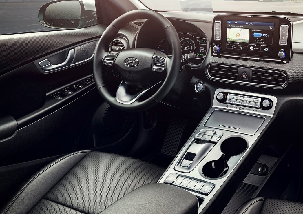От Kona c традиционными ДВС электрическая отличается и внешне — корейцы снабдили кроссовер перелицованными бамперами, 17-дюймовыми колесными дисками и радиаторной решеткой особого дизайна. В салоне машины установили цифровую приборную панель, мультимедийный комплекс с 7- или 8-дюймовым экраном, проекционный дисплей и аудиосистму Krell.