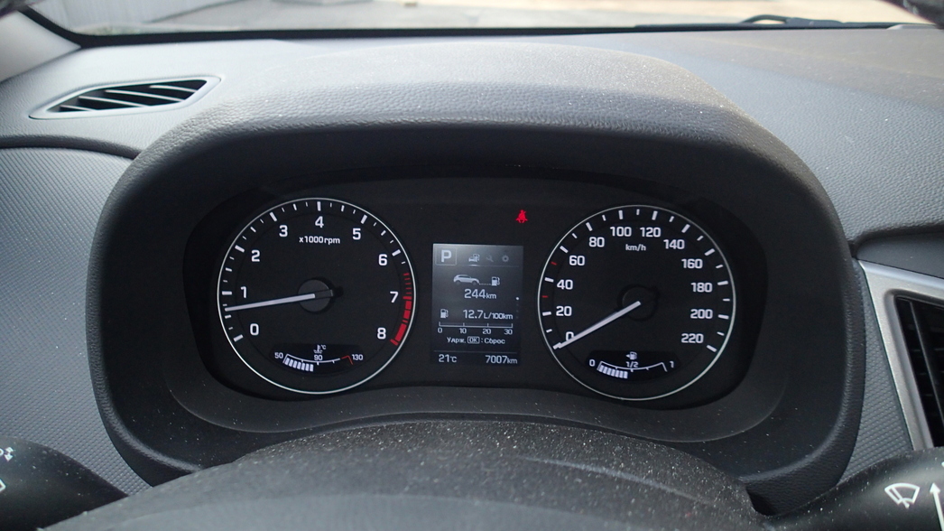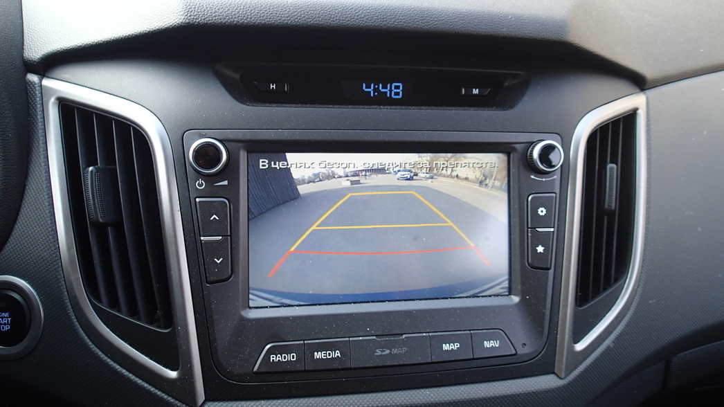 Та же песня звучит и в интерьере «Креты»: из типично «корейского» здесь только рельефное торпедо и крупные лепестки дефлекторов вентиляции, а все остальное оформлено сердито и без озорства, но главное — практично. С эргономикой и функциональностью особых проблем нет, хотя пятидюймовый экран медиасистемы мог бы быть и покрупнее. В общем и целом, явная экономия в глаза не бросается, хотя материалы отделки предельно просты и не так дороги.