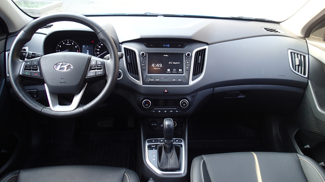 Корейцы хорошенько постарались «раздуть» салон «Креты» до максимально возможных размеров, и им это удалось. Спереди ничто не помешает с комфортом разместиться рослому и «широкому» водителю. В топовой версии, которая побывалана тесте портала «АвтоВзгляд», руль регулируется и по высоте, и по горизонтали. Сидения вроде бы совсем не балуют выдающимся профилем, но оказались вполне удобными даже в дальнобойных поездках. У кроссовера неплохая обзорность, и к тому же производитель совсем не экономил на крупных боковых зеркалах.