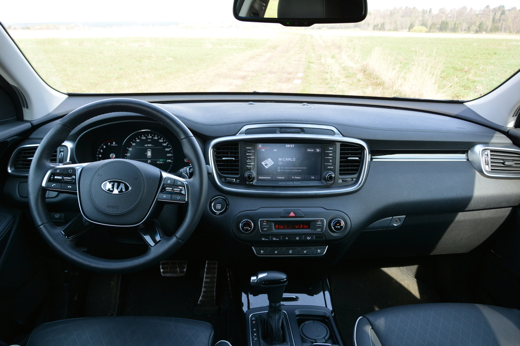 Да и тандем мотор-коробка порадовал. Нам досталось сочетание бензинового 3,5-литрового V6 мощностью 249 л. с. и 8-ступенчатого «автомата». Вопреки ожиданиям, за время тест-драйва заправка машины топливом отнюдь не «обожрала» кошелек. Расход оказался вполне приемлемым, несмотря на то, что автор этих строк совершенно не стеснялся при всяком удобном случае проверить утверждение корейцев, что Sorento с таким движком разгоняется «до сотни» за 7,5 секунды.