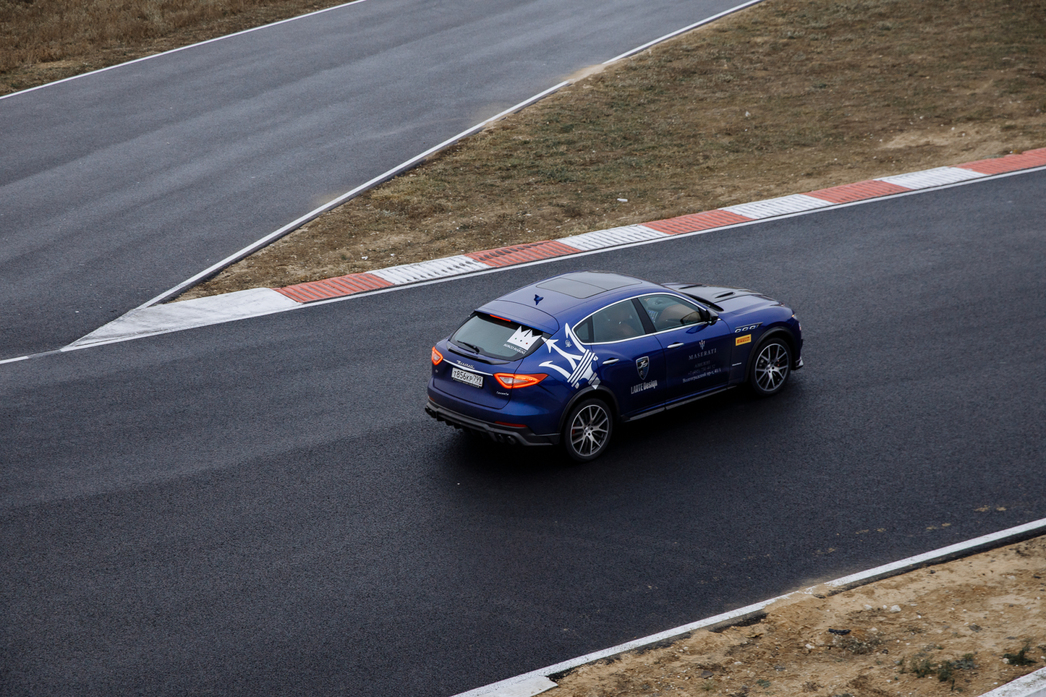 Прыгаю за баранку самого мощного бензинового Levante SQ4 о 430 жеребцах, подвеску — в режим Sport, коробку — в режим Manual: переключаться буду подрулевыми лепестками, мы же все-таки на треке. Педаль акселератора в пол — Maserati слегка приседает, после чего выстреливает так, что у неподготовленных людей с непривычки может потемнеть в глазах, а сами глазные яблоки прижмутся к затылку. Не успеваю даже моргнуть, как стрелка тахометра упирается в красную зону, короткий щелчок пальцами правой руки — вторая — Levante разгоняется еще быстрее, третья — кроссовер уже буквально летит над ровной гладью мокрого асфальта автодрома. Перед поворотом тормоз в пол, короткий щелчок левым рычажком — Levante резко осаживается, и я начинаю плавно вкручивать его в поворот.