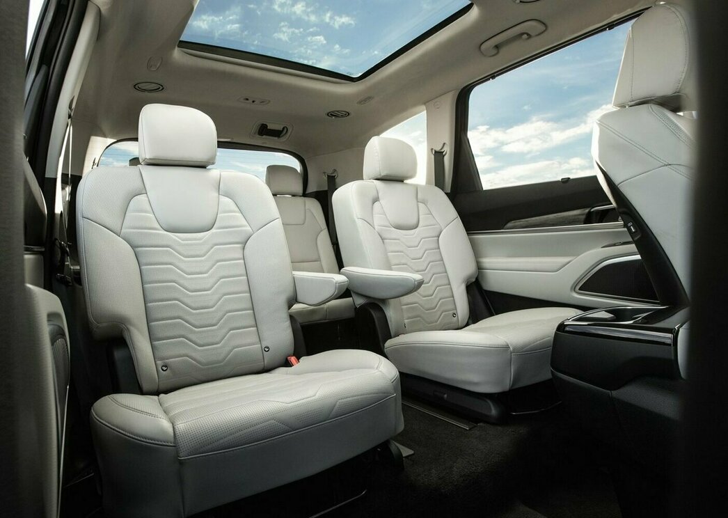 Telluride может похвастать целым букетом систем активной безопасности: электронные ассистенты предотвращают фронтальные и попутные столкновения, мониторят слепые зоны, удерживают в полосе. Кроме того, помощники отслеживают движение на галерке (полезно, если в салоне дети и животные).