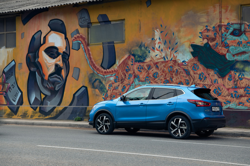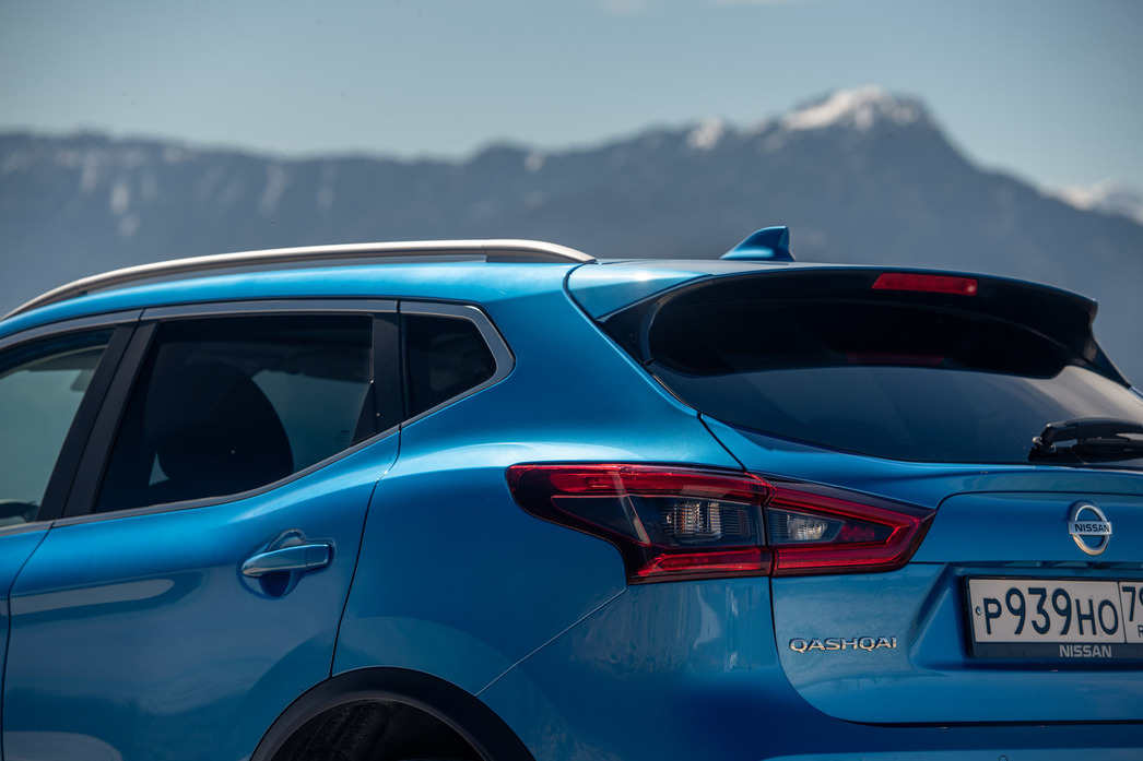 Нет, внешний «улучшайзинг» на месте. Дизайн-концепция в «бумеранг-стиле» кроссоверу к лицу. Эффектные бамперы, V-образный «гриль», хищного вида оптика и изящные колесные диски 19-го диаметра — вот с таким «Кашкаем» нам теперь жить.