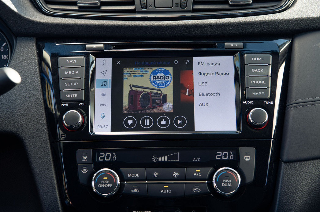 Из сладостей бытия у «Кашкая» есть обогрев «баранки» и всех сидений без исключения. А еще тут установлен мультимедийно-информационный комплекс на базе «Яндекс.Авто», умеющий в режиме он-лайн передавать информацию о пробках, отражать на штатном дисплее содержимое смартфонов и выходить в Интернет. Причем командовать головным устройством можно голосом. Если, конечно, он у вас не такой писклявый, как у Владимира Преснякова.
