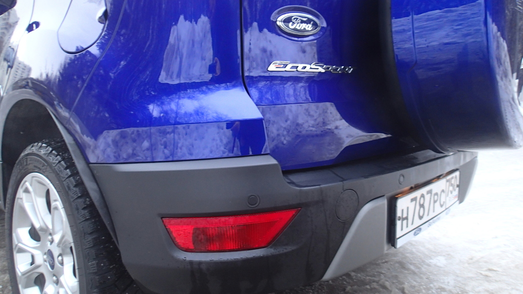 А вот крохотная кнопочка, интегрированная в задний правый фонарь и отвечающая за операцию «отворения» заветного багажного отсека, выглядит вполне себе интеллигентно, хоть и придется слегка запачкать руку. Если же не рассчитать и приложить слишком большое усилие при закрывании пятой двери, то сильный удар заставит EcoSport содрогнуться всем своим несущим кузовом.