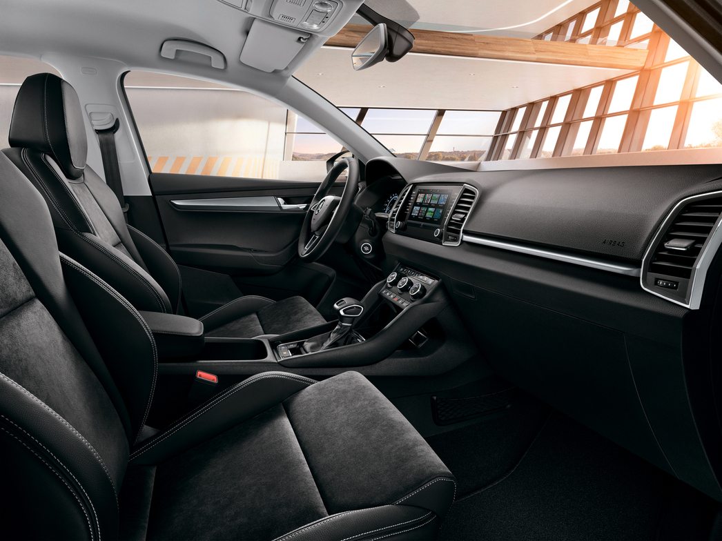 Skoda Karoq Ambition комплектуется светодиодной оптикой, «противотуманками» и рейлингами черного цвета. Покупателя также порадуют помощник подъема в горку, система курсовой устойчивости и круиз-контроль с ограничителем скорости. Не лишними будут и датчик дождя, задние парктроники и защита картера.