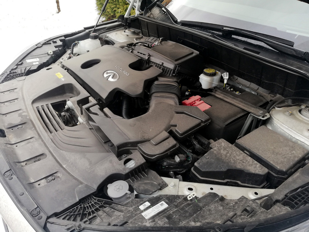 Итак, почему же ускакавшие 84 «лошадки» совершенно не заметны? Ведь, в конце концов, QX50 не настолько уж и легче канувшего в Лету собрата. А дело всё в том, что в качестве силовой установки используется 2-литровая «четверка» Infiniti VC-Turbo с изменяемой от 8:1 до 14:1 степенью сжатия. Японский производитель очень горд своим пламенным сердцем.