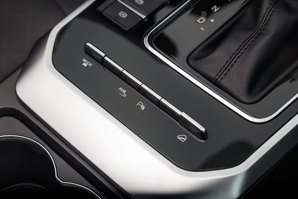 На центральном тоннеле «восьмерки» разработчики разместили клавишу стояночного тормоза, а также кнопки включения парктроников, камер кругового обзора и ассистента движения при спуске. Там же есть два подстаканника и отдел для хранения мелочевки, а в подлокотнике — охлаждаемое отделение и пара USB-разьемов. Остается добавить, что интерьер кроссовера щеголяет хромированными декоративными элементами.