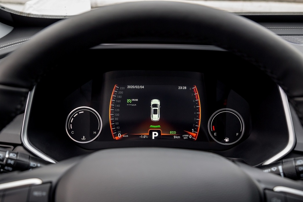 На передней консоли Chery Tiggo 8 расположились сразу три экрана. Семидюймовый выступает в качестве «приборки», позволяющей выбирать три темы оформления. Выводить на монитор нужную информацию — пробег, температуру за бортом или давление в шинах — помогают кнопки мультифункционального руля.