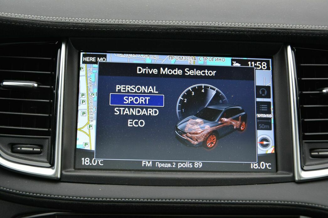 Руль наливается тяжестью и чувствительностью, педаль акселератора словно подменили — автомобиль резко реагирует даже на малейшее касание стопы. Машина начинает живо отвечать на любые команды и задорно ехать. Динамика такая, что «семейным» спортивный режим уже не назовешь. Гул двигателя целенаправленно врывается в салон, радуя агрессивным рыком. Чего нельзя сказать о шорохе ветра, который на высокой скорости заставляет проверять: все ли окна заперты? Над шумоизоляцией господа из Infiniti работали-работали, а потом, видимо, отвлеклись.