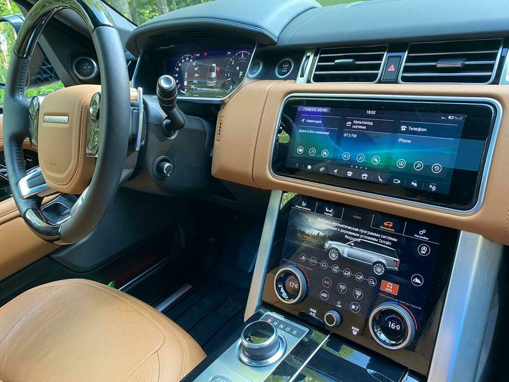 В салоне вас ожидает поистине кричащая нарочитая роскошь, какая и должна быть в премиальном автомобиле. Все, что только придумано в современном мировом автомобилестроении, напихано внутри этого Range Rover. Все убранство обтянуто кожей и алькантарой, без сдвижной панорамной крыши сейчас вообще никуда, а панель приборов и центральная консоль — полностью графические. Так называемые «тачскрины» уже не глючат и вполне дружелюбно относятся к телефонам. Правда, быстродействие могло бы быть и чуточку интенсивнее. Но это не беда, ведь спешка нужна, как известно, при ловле блох. Невероятное количество встроенных USB-портов позволяют заряжать одновременно кучу гаджетов, слушать музыку.
