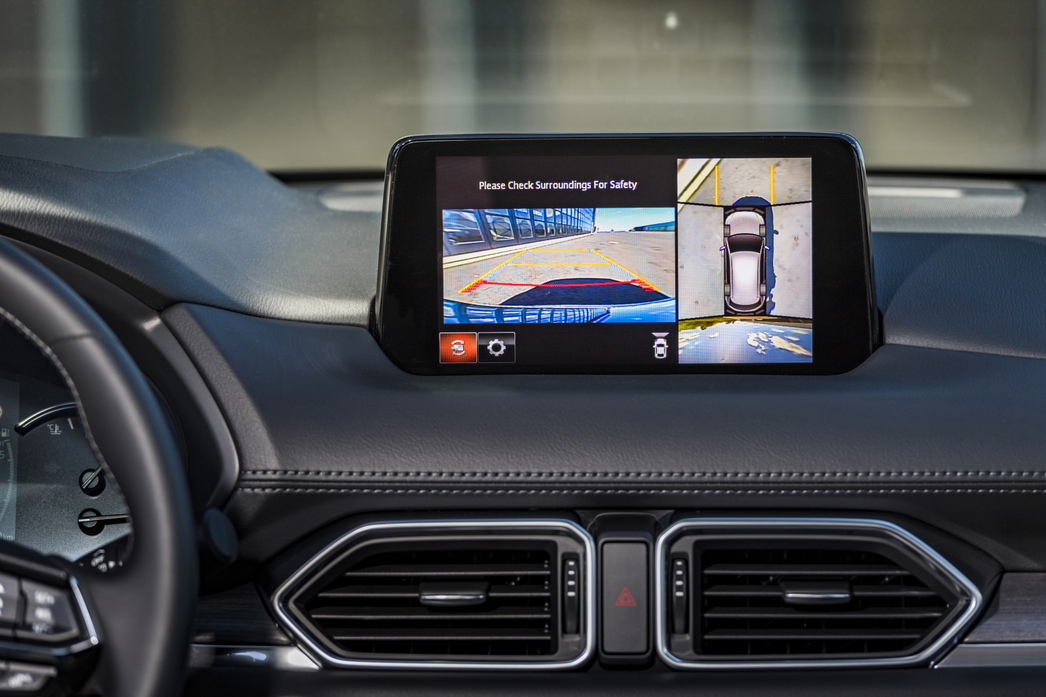 Для облегчения парковки и маневрирования, прежде всего, в сложных городских условиях, где определяющим фактором приходится признать дефицит места и множество невысоких бордюров, столбиков и прочих артефактов, «Мазду» оснастили системой кругового обзора. Четыре камеры транслируют на дисплей мультимедийки виртуальный вид сверху. Впрочем, можно выбрать и изображение с каждой из них по отдельности.