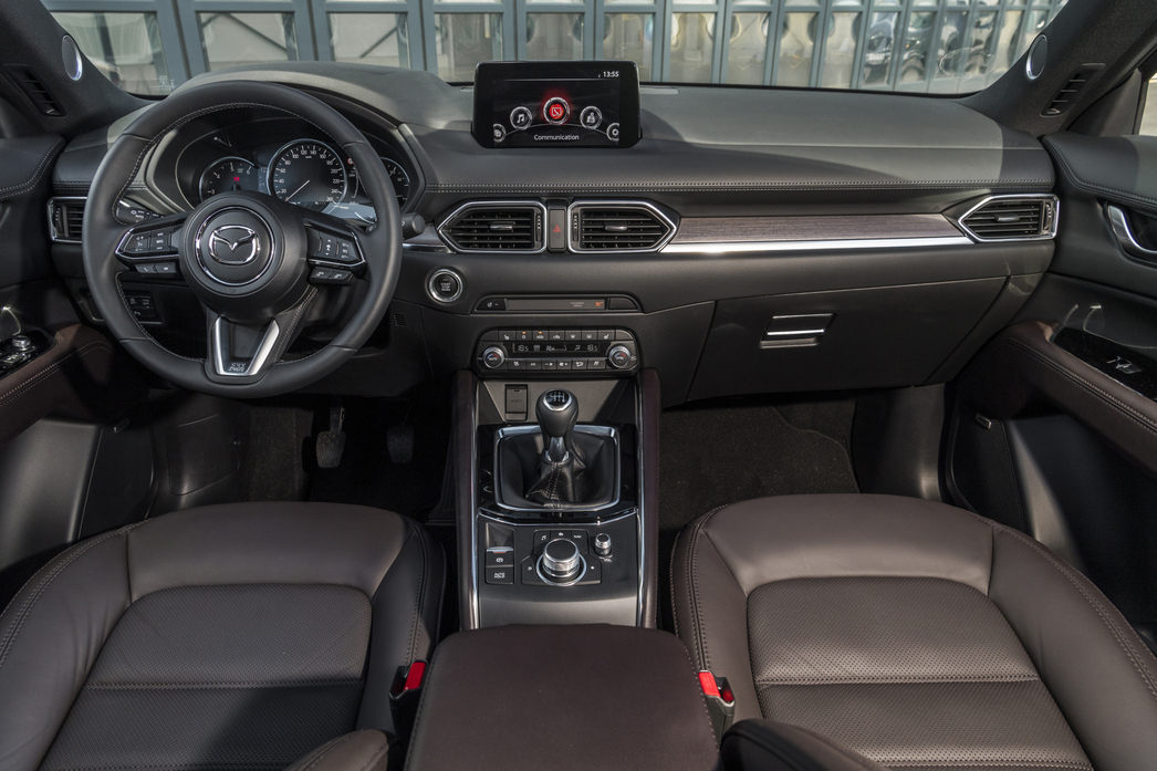 Во внешности автомобиля никаких изменений не произошло, даже чисто косметических. Хотя нет, два отличия между машинами 2019-го и 2020 годов все-таки есть. Если у более ранних версий шрифт на шильдике «CX-5» был наклонный, то сейчас он прямой. Знание этого маленького секрета поможет вам выглядеть знатоком японского автопрома в глазах менее опытных друзей. Помимо этого, в цветовой гамме окраски кузова появился новый потрясающий серый металлик Polymetal Gray. Доплата за него точно такая же, как и за другие цвета, отличные от базового «Арктического белого» — 19 000 рублей.