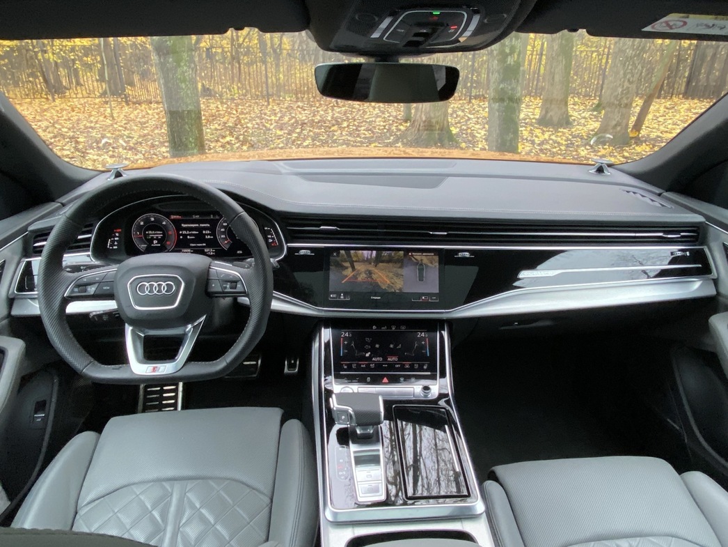 Да, и конструкторы в очередной раз заслуживают респекта за то, что отказались от новомодной традиции выносить экран мульимедийки на торпедо — и обзору мешает, и бликует, и тянуться к нему приходится, да и чисто эстетически смотрится так себе. В Q8 же реально чувствуешь себя пилотом звездолета, управляя громадиной весом более двух тонн с пульта управления.