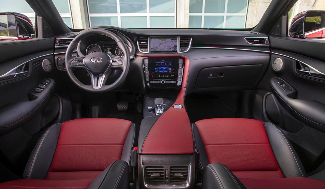 Двухлитровый турбомотор отдачей 249 л. с., вариатор и полный привод тоже знакомы по «пятидесятке». Однако ехать Infiniti QX55 должен несколько иначе, ведь инженеры сделали настройки подвески более спортивными. И, конечно, никуда не делась фирменная система Direct Adaptive Steering — то есть связь между рулевым колесом и передними колесами «по проводам».