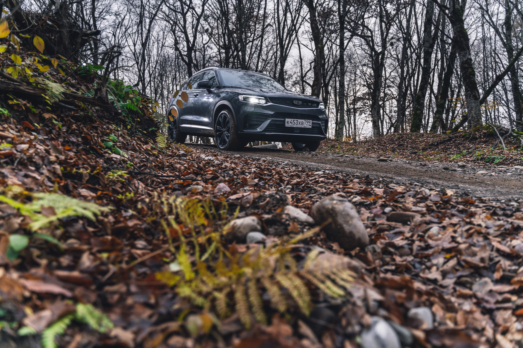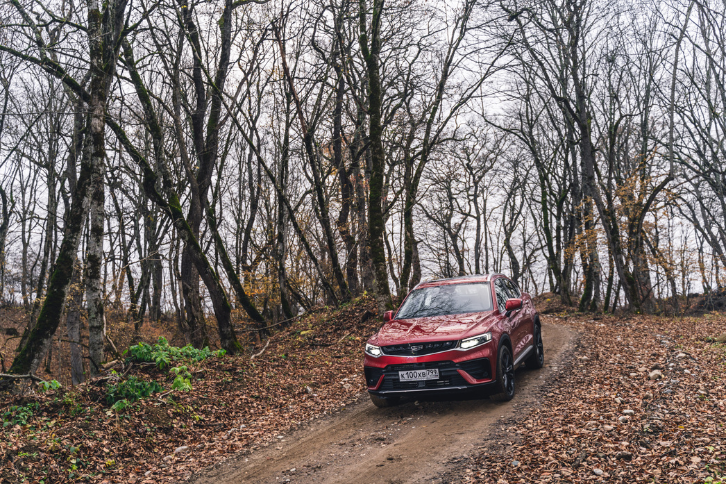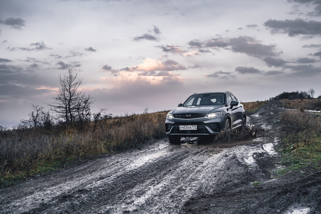 А как дела на бездорожье? Поверьте, грунтовку кроссовер любит куда больше, чем автор этих строк бывшую тещу. Крутящий момент распределяется по осям в равных долях: в помощь — электрогидравлическая муфта BorgWarner. Грязевые ванны, колею и барханы «Джили» форсирует уверенно, хотя и не всегда с удовольствием. Еще бы, ведь по большому счету это городской пижон, а не сельский проходимец. И в откровенную оффроуд-душегубку на нем лучше не соваться, а вот до дачи довезет наверняка. Даже если придется пробираться сквозь сугробы — для таких приключений найдется режим «снег».