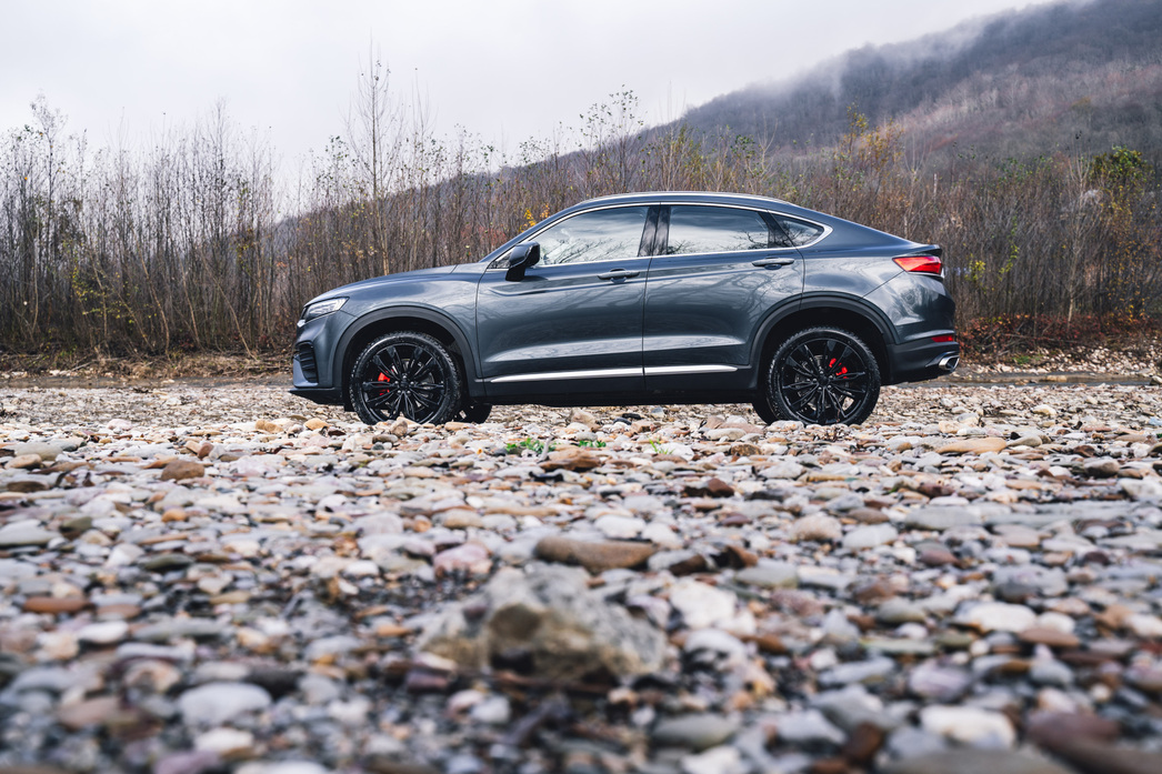 Встречают, как водится, по одежке. А костюмчик китайцу и правда к лицу — он прямо-таки на стиле. Внешний облик автомобиля получился одновременно дерзким и элегантным, агрессивным и ярким, атлетичным и галантным. А главное — типично европейским и с намеком на свежеиспеченные кричащие тренды. Да, поджарый силуэт, черные элементы декора и дизайнерские 20-дюймовые «катки» действительно подчеркивают спортивный нрав кросс-купе. А в чем же премиальность этого фитнес-мобиля? Давайте попробуем выяснить, заглянув в салон.