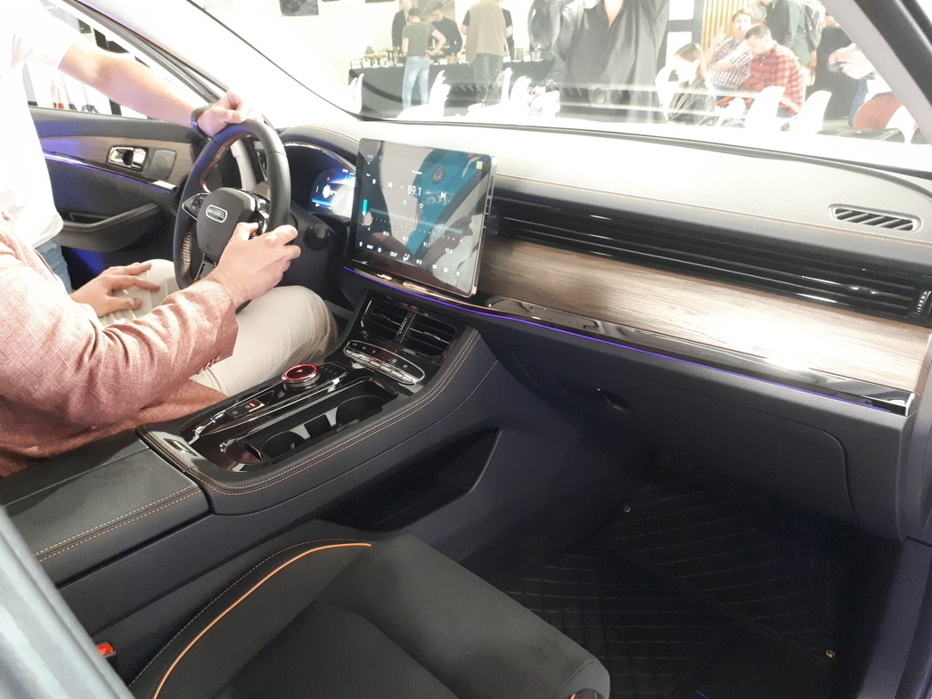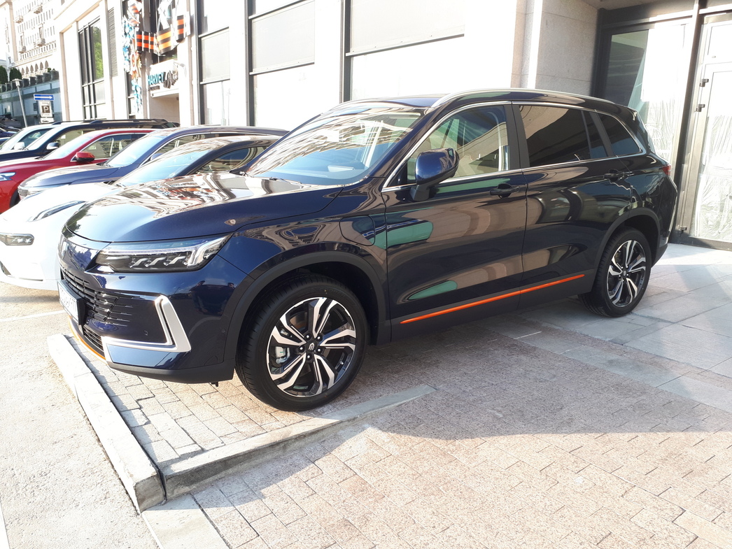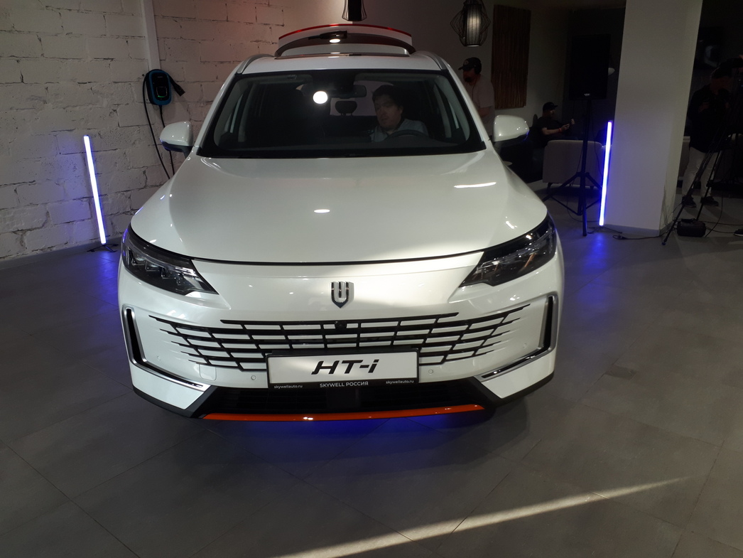 Внешне Skywell HT-i вполне себе симпатичен. Его длина составляет 4720 мм, ширина — 1908 мм, высота — 1701 мм, а размер колесной базы равен 2800 мм. То есть это конкурент Skoda Kodiaq или Mitsubishi Outlander PHEV. В салоне стильно, а кресла удобны. Отделка на довольно высоком уровне. Да и оснащение богато. Есть лазерные фары, люк в крыше, цифровая панель приборов и 12,8-дюймовый экран мультимедиа.