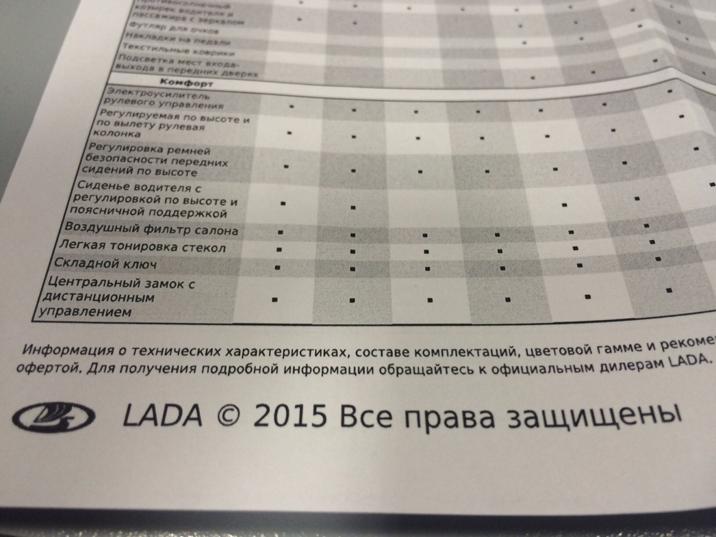 Поэтому, несмотря на уговоры присмотреться к «топовой» вариации аж за 677 000 рублей, в которой «есть все без исключения и даже больше» (правда, разницы, кроме как в наличии двух педалей вместо трех, я в спецификациях не нашел), меня вновь потянуло заговорить о базовой версии. И тогда доблестный сотрудник дилерского центра с грустью «вспомнил», что имеется у них авто в промежуточном варианте – Comfort за 570 000 рублей. Правда, в шоу-руме (явно не случайно) ее не оказалось – смотреть более вменяемую по цене «Весту» пришлось идти в соседнюю пристройку. Таковых экземпляров нашлось сразу несколько и от старших версий они отличаются отсутствием обогрева лобового стекла, электрических стеклоподъемников на задних дверях, мультируля, а также круиз-контроля, продвинутой мультимедиа с тачскрином, камеры заднего вида и легкосплавных колес.